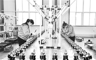 河北省河间市一家再制造企业的工人在汽车零部件生产线上工作。 新华社记者 牟宇摄